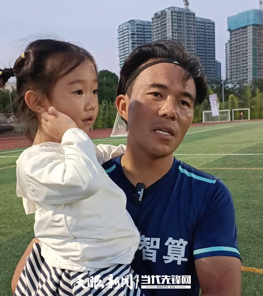 采访间隙,场边传来一阵清脆的喊声,何程骋转头望去,脸上立刻露出温柔的笑容——那是他的妻子和女儿正在向他挥手。“今天家人都来了,女儿也是得知我要上场踢球,特意来陪我。”提及家人,何程骋的语气变得温柔起来,他说:“自己能坚持踢球,离不开家人的支持,自己现在已经40岁了,在工作之余还有这样的业余爱好,在自己投身业余爱好的同时,场边还有家人的陪伴,对于自己现在的状态很满足,感谢家人的支持。”足球不仅是他的热爱,更成为了他与家人之间情感交流的重要纽带,见证着孩子的健康成长。