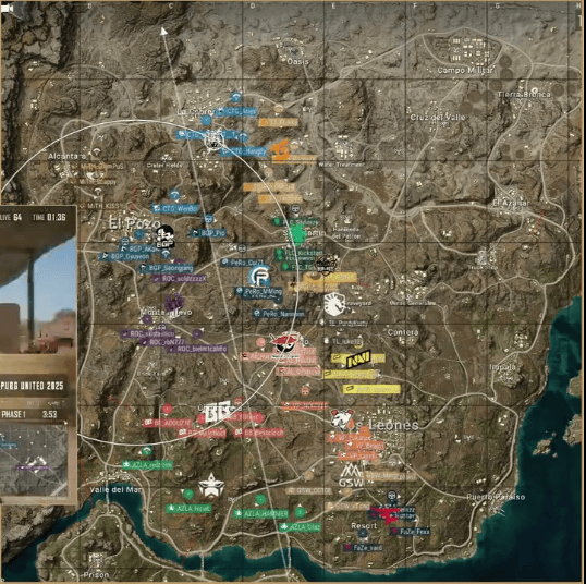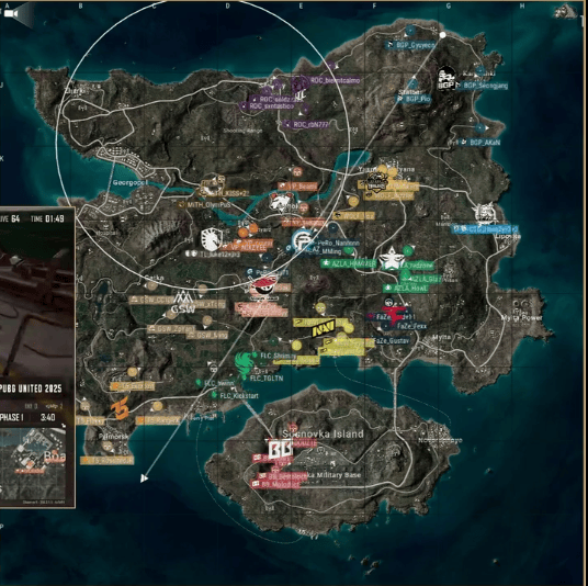 阶段6,圈型刷到狮城南部山地附近。NAVI选择进攻T5,利用道具打开突破口,T5被淘汰出局。ROC圈边与GSW交战,BB也从后方参战,ROC、GSW先后被淘汰。