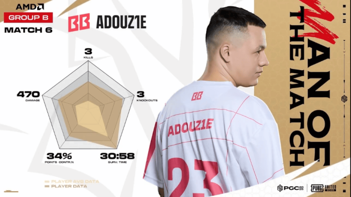 阶段6,BGP进圈途中被PeRo独狼打倒两人,随后最后一人补枪将PeRo独狼淘汰。