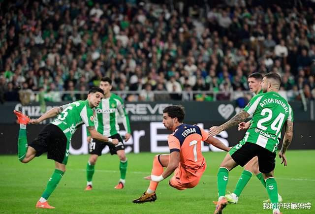 第40分钟,佩德里再次送出妙传,费兰-托雷斯禁区外打门,击中贝蒂斯后卫折射入网,大演帽子戏法,巴萨遥遥领先,4-1!