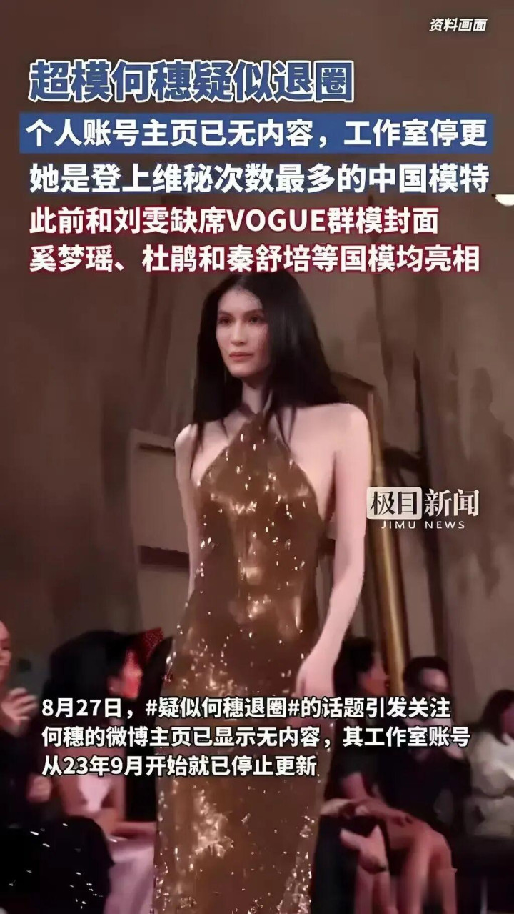 在清空社交动态之前,何穗的最后一条微博停留在今年四月。自那以后,她几乎消失在公众视野中。就连《VOGUE》金九封面这样无数模特梦寐以求的顶级资源,也被她婉拒。