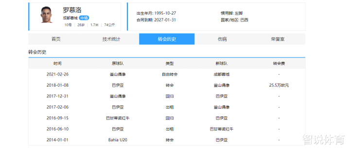 来自成都蓉城俱乐部,巴西籍,司职中场,1995年球员,现今29岁,年龄较合适