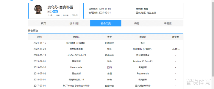 来自浙江队,荷兰籍,司职前锋,1999年球员,现今26岁。