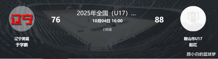 全国U17篮球联赛,辽宁男篮76-88不敌鞍山男篮,在鞍山赛区辽宁U17的7场比赛输给鞍山U17两场,其余的5场比赛都取得胜利,辽宁U17面对鞍山U17是真的力不从心,辽篮核心于善元已经十分努力,只可惜他有登场时间限制(不能超过24分钟)。