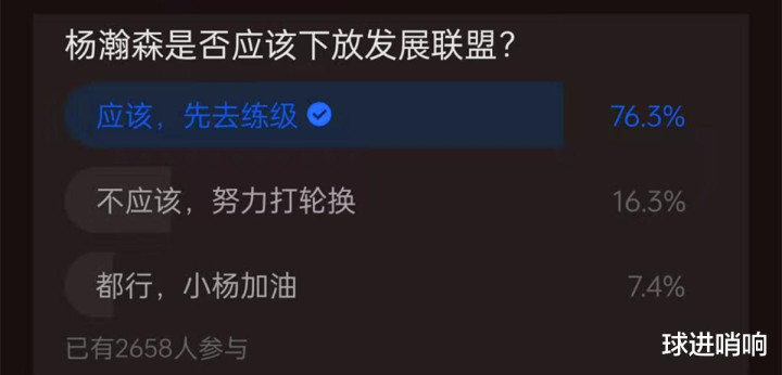 新赛季至今场均仅给5.6分钟登场时间,场均只能拿到2分,杨瀚森是否应该早点去G联赛练级?超千人票选结果一边倒。
