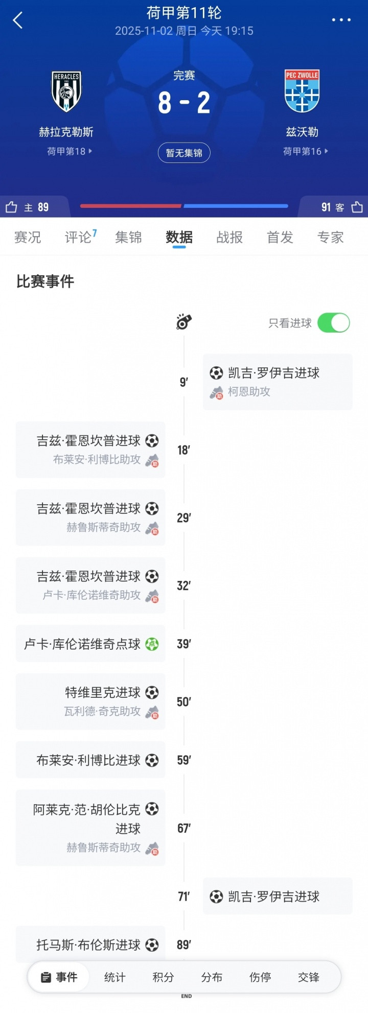 过年了荷甲垫底队赫拉克勒斯8-2狂胜对手, 前10轮狂丢30球