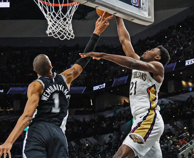 和鹈鹕一战,双方实力差距来看本没有任何悬念,但是从第二节起,鹈鹕在锡安的带领下,逐步反超并拉开分差。锡安面对文班亚马各种强攻如鱼得水。而打到第三节,鹈鹕一度拉开20分分差,比赛眼看失去悬念,马刺终于发力,瓦塞尔带着替补发力,约翰逊和文班亚马内外开花,哈珀对抗抛投,文班亚马撤步三分,马刺轻松抹平20分差距,而且凭借单节24-5反超5分。但最后5分钟,马刺像换了一支球队,进攻彻底哑火,而锡安拉杆灌篮+墨菲底角三分+绕挡拆后抛投,米西也顶开文班亚马重扣,鹈鹕拉开7分分差。
