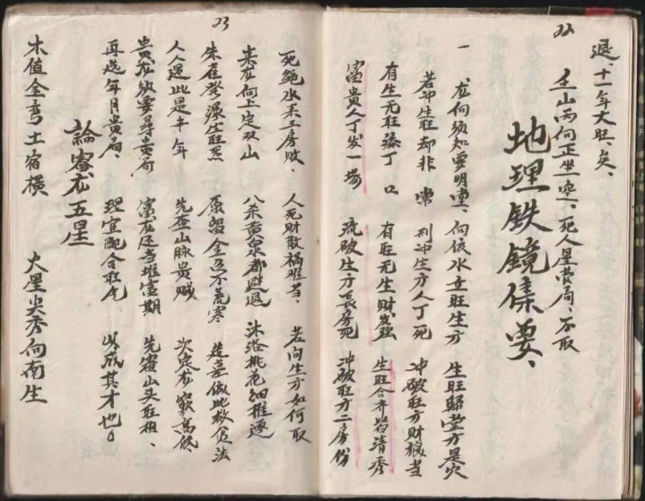 毛笔书写的字迹古朴遒劲,多幅手绘水法图 —— 九宫盘、九星水势、二十四山向、消水方位,线条清晰,标注精准,比后世翻印本更能还原古法真意。无水印、无断页、无涂改,传统线装的形制,保留了清代钞本的原始风貌。