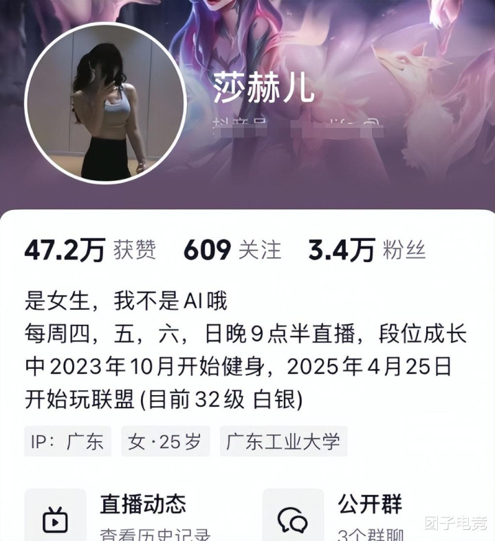 首先这不是AI,这是一个小姐姐抖音名字叫做:莎赫儿,如今每天都会开直播打LOL,可以说也算是找到自己的小副业了。